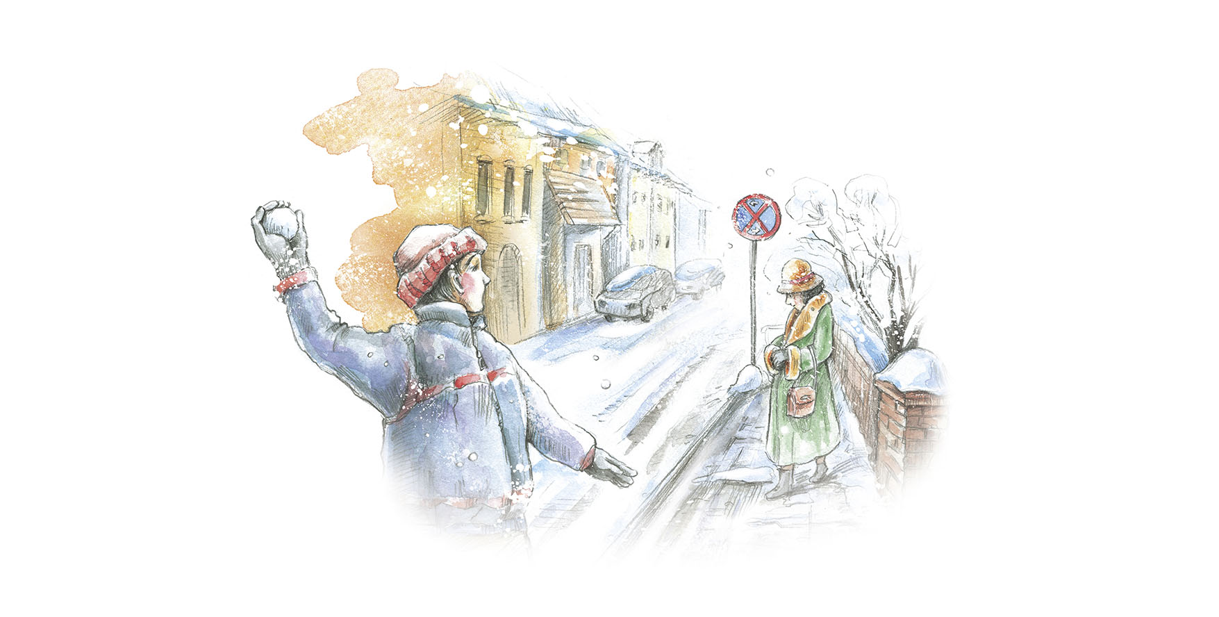Illustration zur Geschichte «Bernemann wirft einen Schneeball» von Peter Biqué